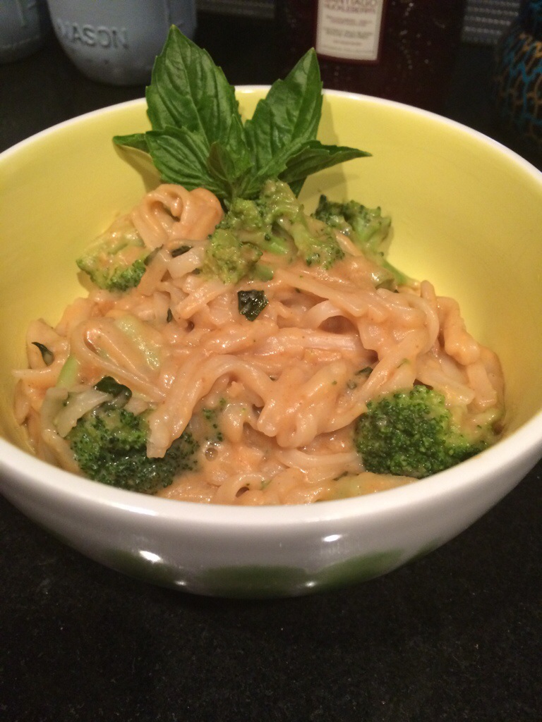 1/2 pound noodles of your choice (I used rice noodles but you could use whole wheat spaghetti if that’s what you have!)