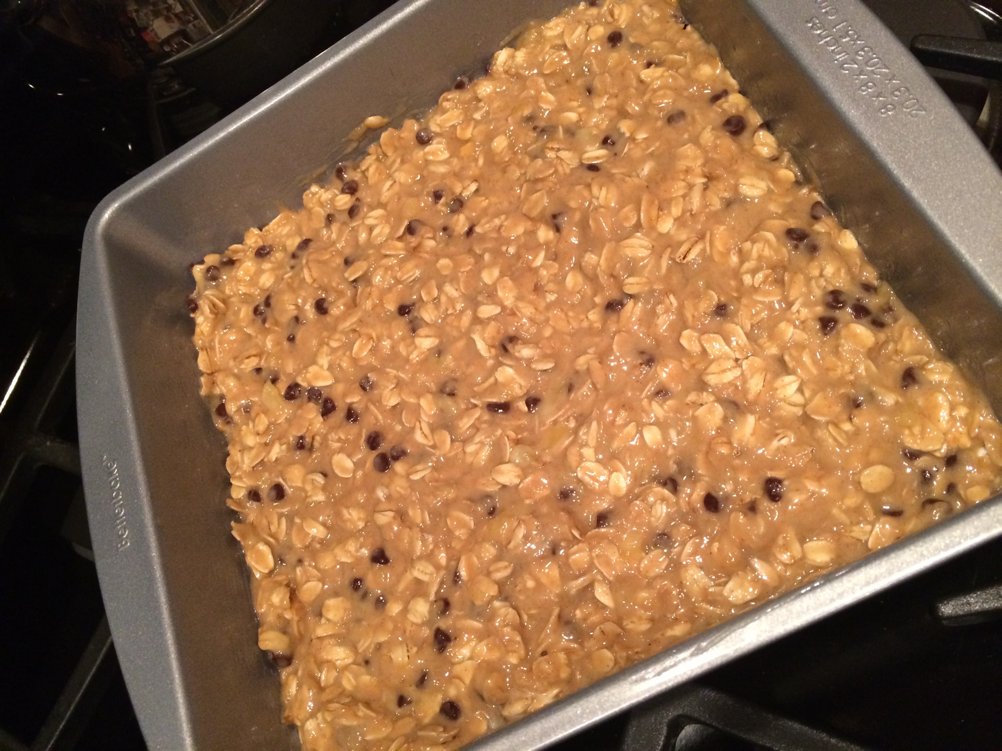 I just can’t seem to let ripe bananas go bad! And with 2 staring at me the other night I debated banana bread or banana muffins and started trolling the internet for ideas. I came across a bunch of different recipes for banana squares and merged a few together to get these yummy and delicious Banana Chocolate Chip Oatmeal Squares!