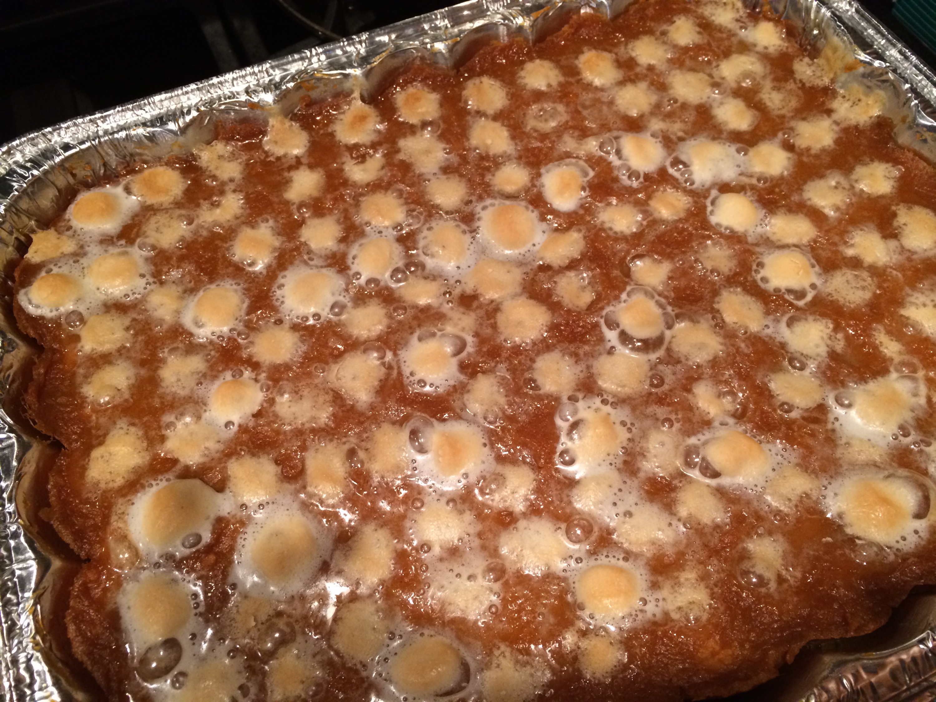 Remove from oven and top with marshmallows, add as many or as few as you like!