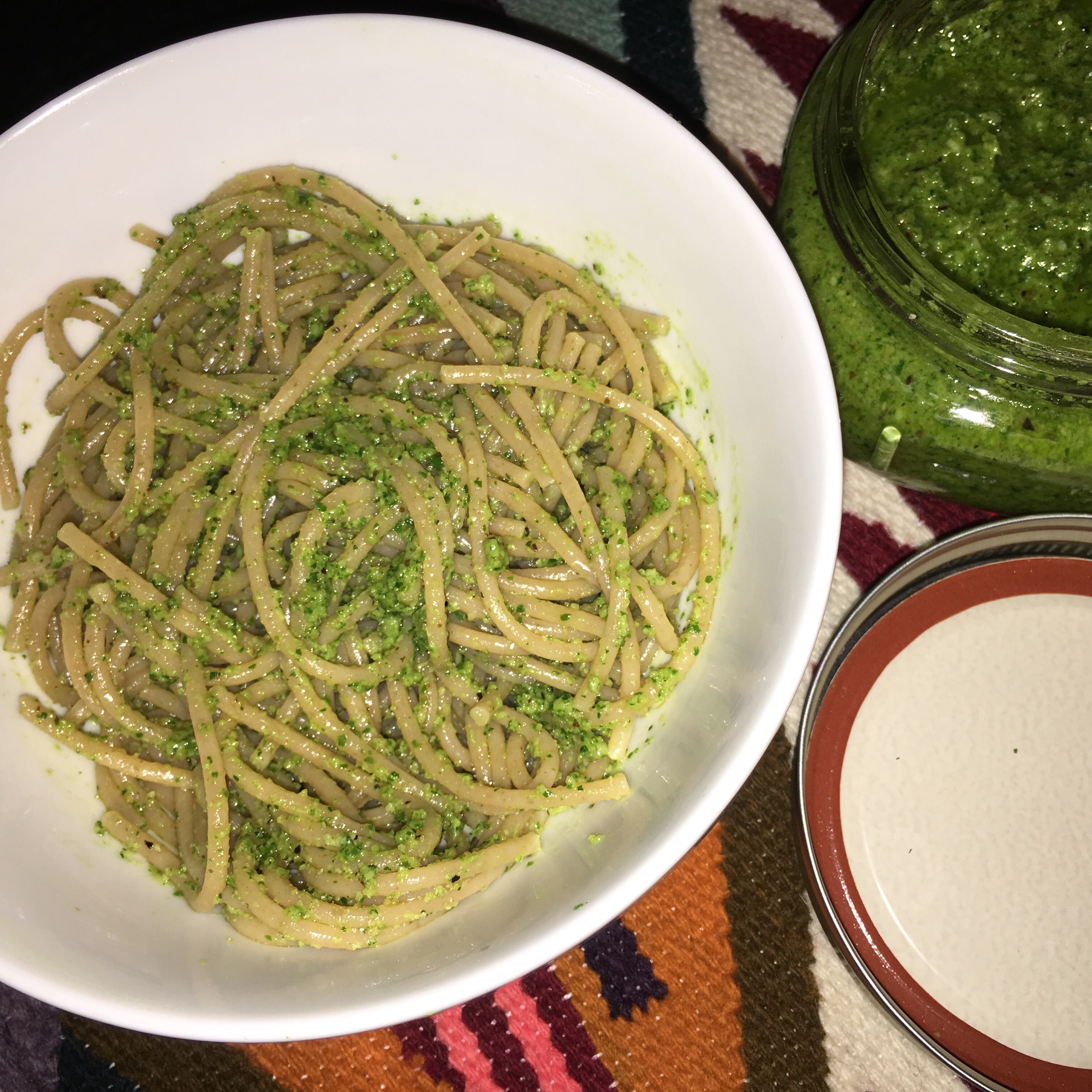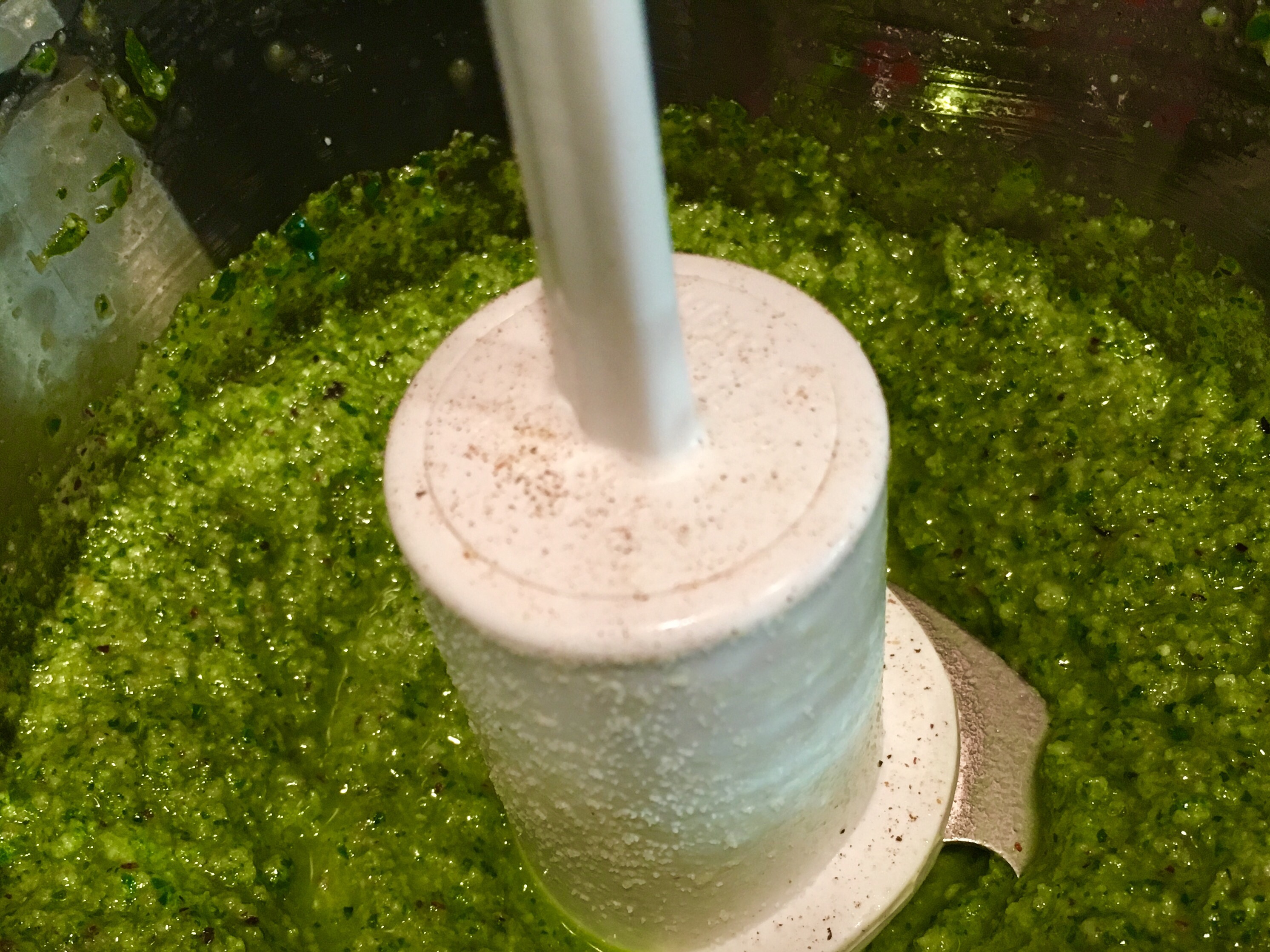 Pesto sauce was originally made with a mortar and pestle hence the word pesto, from the verb pestare – “to crush”. Pesto alla Genovese is the pesto most are familiar with made with pine nuts. Pesto di Noci is not as common but a great alternative to the traditional made with walnuts. Not only does this provide a different flavor but, more importantly, an inexpensive option. I changed it up a bit and instead of basil I used baby kale for an added kick of nutrients and to make myself feel a little less guilty about the pasta!